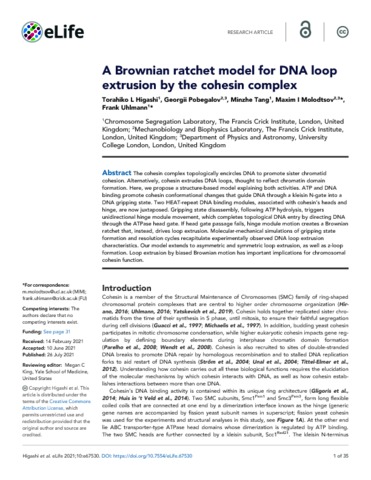 Title: | A Brownian ratchet model for DNA loop extrusion by the cohesin complex. |