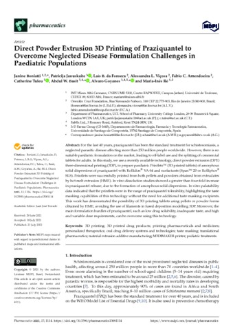 | Title: | Direct powder extrusion 3d printing of praziquantel to overcome neglected disease formulation challenges in paediatric populations |