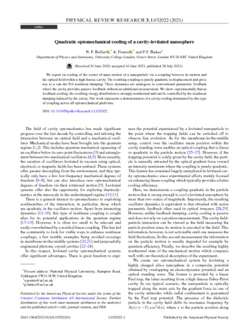 Title: | Quadratic optomechanical cooling of a cavity-levitated nanosphere |