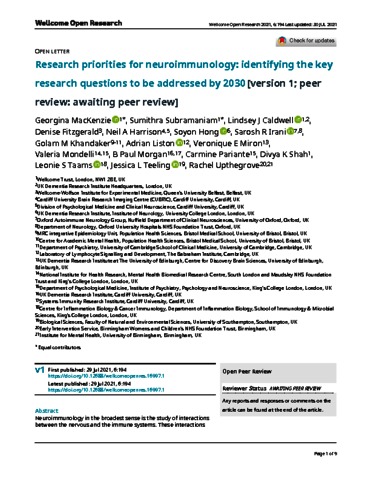 Title: | Research priorities for neuroimmunology: identifying the key research questions to be addressed by 2030 |