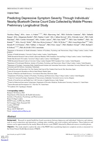 Dobson_Predicting Depressive Symptom Severity Through Individuals' Nearby Bluetooth Device Count Data Collected by Mobile Phones_VoR.pdf - Published Version Download (1MB) | Preview |