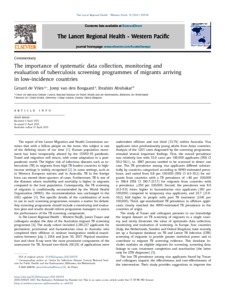 Title: | The importance of systematic data collection, monitoring and evaluation of tuberculosis screening programmes of migrants arriving in low-incidence countries |