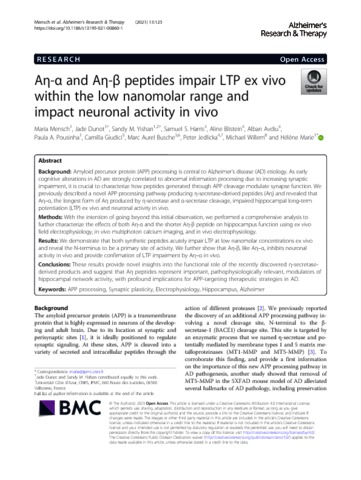 | Title: | A eta-alpha and A eta-beta peptides impair LTP ex vivo within the low nanomolar range and impact neuronal activity in vivo |
