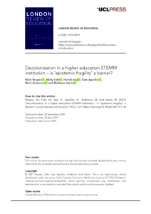Title: | Decolonization in a higher education STEMM institution – is ‘epistemic fragility’ a barrier? |