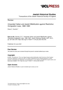 Title: | Unwanted: Italian and Jewish Mobilization against Restrictive Immigration Laws, 1882–1965 |