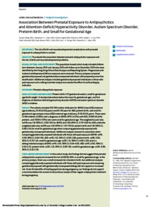 Title: | Associations between prenatal exposure to antipsychotics and attention-deficit/hyperactivity disorder, autism spectrum disorder, preterm birth and small for gestational age: a population-based cohort study |