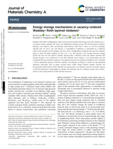 Title: | Energy storage mechanisms in vacancy-ordered Wadsley-Roth layered niobates |