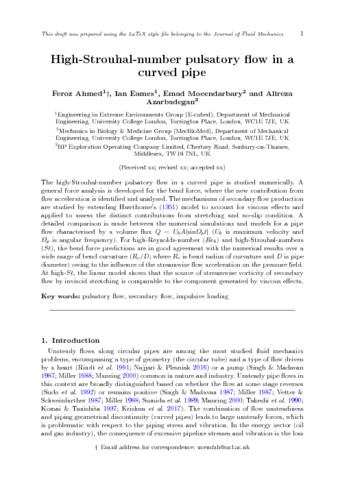 Title: | High-Strouhal-number pulsatile flow in a curved pipe |