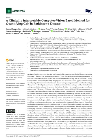 A clinically interpretable computer-vision based method for quantifying gait in parkinson’s disease.