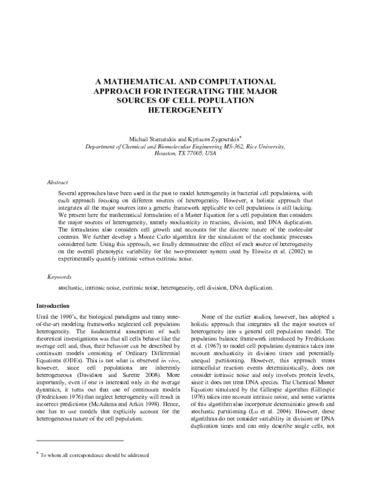 A Mathematical and Computational Approach for Integrating the Major Sources of Cell Population Heterogeneity.