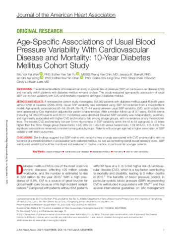 Title: | Age-Specific Associations of Usual Blood Pressure Variability With Cardiovascular Disease and Mortality: 10-Year Diabetes Mellitus Cohort Study |