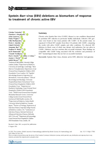 Title: | Epstein-Barr virus (EBV) deletions as biomarkers of response to treatment of chronic active EBV |