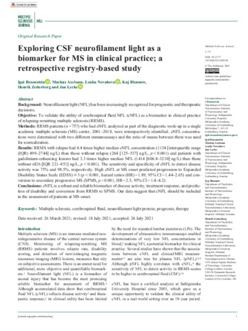 Title: | Exploring CSF neurofilament light as a biomarker for MS in clinical practice; a retrospective registry-based study |