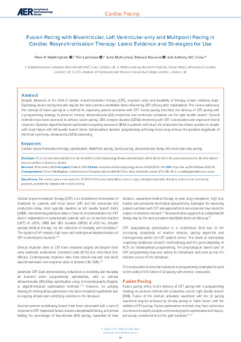 Title: | Fusion pacing with biventricular, left ventricular-only and multipoint pacing in cardiac resynchronisation therapy: Latest evidence and strategies for use |