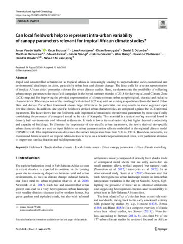 | Title: | Can local fieldwork help to represent intra-urban variability of canopy parameters relevant for tropical African climate studies? |