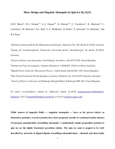 Title: | Dirac Strings and Magnetic Monopoles in the Spin Ice Dy2Ti2O7 |