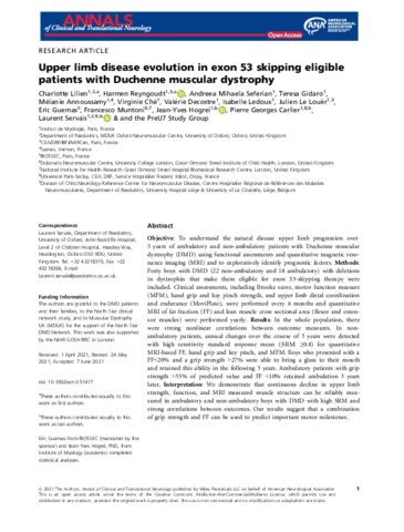 Title: | Upper limb disease evolution in exon 53 skipping eligible patients with Duchenne muscular dystrophy |