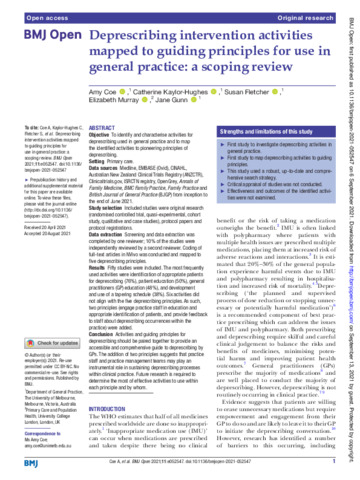 Deprescribing intervention activities mapped to guiding principles for use in general practice: a scoping review.