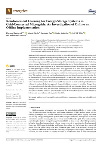 | Title: | Reinforcement Learning for Energy-Storage Systems in Grid-Connected Microgrids: An Investigation of Online vs. Offline Implementation |