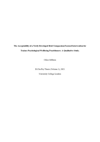 Title: | The Acceptability of a Newly Developed Brief Compassion-Focused Intervention for Trainee Psychological Wellbeing Practitioners: A Qualitative Study |