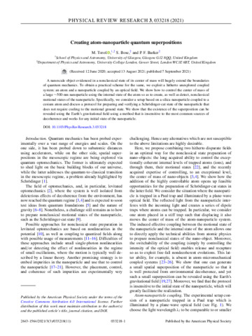 Title: | Creating atom-nanoparticle quantum superpositions |