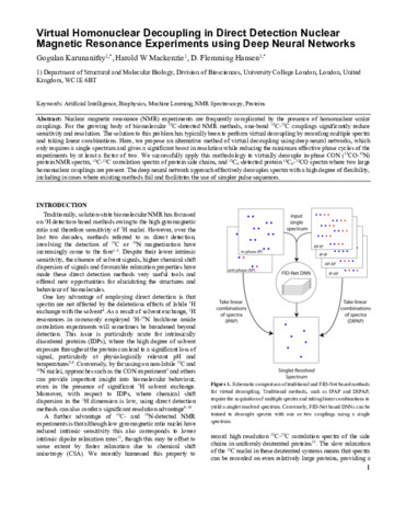 Title: | Virtual Homonuclear Decoupling in Direct Detection Nuclear Magnetic Resonance Experiments using Deep Neural Networks |
