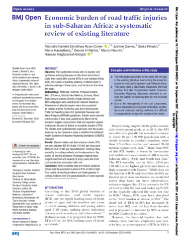 Title: | Economic burden of road traffic injuries in sub-Saharan Africa: A systematic review of existing literature |