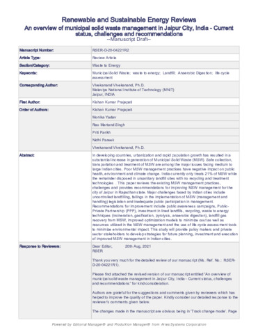 Parikh_An overview of municipal solid waste management in Jaipur city, India - Current status, challenges and recommendations_AAM.pdf - Accepted Version Download (4MB) | Preview |
