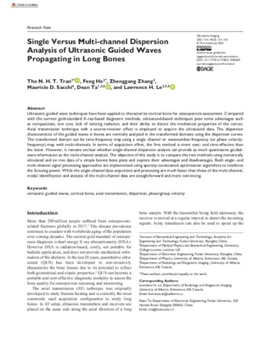 Title: | Single Versus Multi-channel Dispersion Analysis of Ultrasonic Guided Waves Propagating in Long Bones |