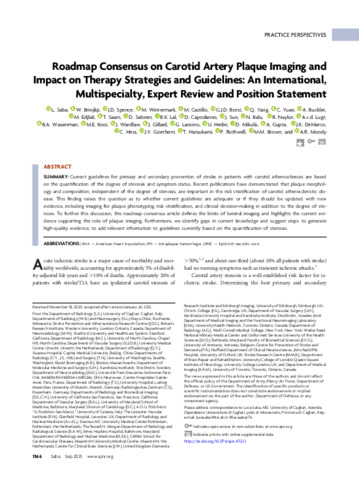 Title: | Roadmap Consensus on Carotid Artery Plaque Imaging and Impact on Therapy Strategies and Guidelines: An International, Multispecialty, Expert Review and Position Statement |