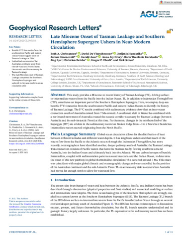 Title: | Late Miocene Onset of Tasman Leakage and Southern Hemisphere Supergyre Ushers in Near-Modern Circulation |