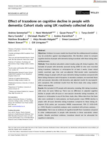 Title: | Effect of trazodone on cognitive decline in people with dementia: Cohort study using UK routinely collected data |