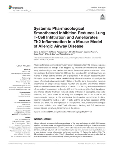 Crompton_Systemic Pharmacological Smoothened Inhibition Reduces Lung T-Cell Infiltration and Ameliorates Th2 Inflammation in a Mouse Model of Allergic Airway Disease_VoR.pdf - Published Version Download (4MB) | Preview |