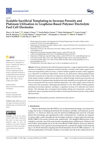 | Title: | Scalable sacrificial templating to increase porosity and platinum utilisation in graphene-based polymer electrolyte fuel cell electrodes |