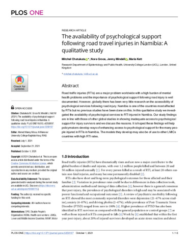 Title: | The availability of psychological support following road travel injuries in Namibia: A qualitative study |