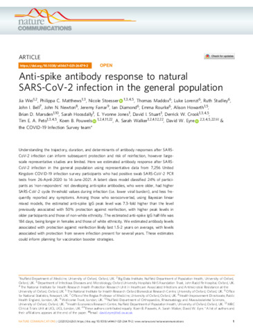 Anti-spike antibody response to natural SARS-CoV-2 infection in the general population.