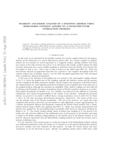 Stability and error analysis of a splitting method using Robin–Robin coupling applied to a fluid–structure interaction problem.