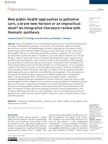 Title: | New public health approaches to palliative care, a brave new horizon or an impractical ideal? An Integrative literature review with thematic synthesis |