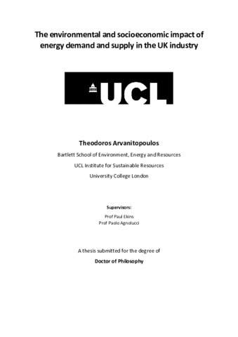 Title: | The environmental and socioeconomic impact of energy demand and supply in the UK industry |