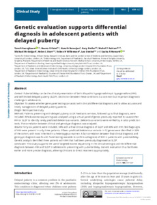 Title: | Genetic evaluation supports differential diagnosis in adolescent patients with delayed puberty |