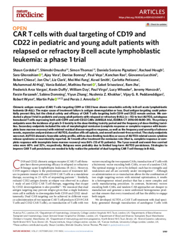 Amrolia_CAR T cells with dual targeting of CD19 and CD22 in pediatric and young adult patients with relapsed or refractory B cell acute lymphoblastic leukemia_AOP.pdf - Published Version Download (8MB) | Preview |