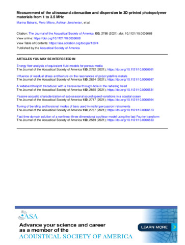 | Title: | Measurement of the ultrasound attenuation and dispersion in 3D-printed photopolymer materials from 1 to 3.5 MHz |