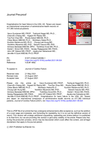 Title: | Hospitalization for Heart Failure in the United States, UK, Taiwan, and Japan: An International Comparison of Administrative Health Records on 413,385 Individual Patients |