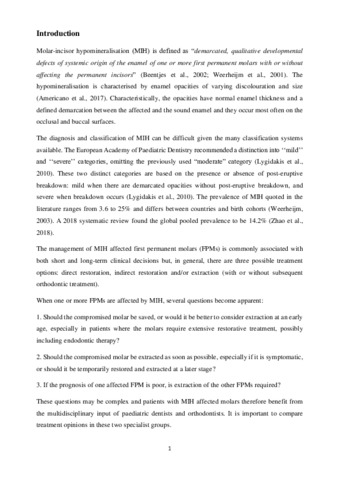 Decision making regarding management of compromised first permanent molars in patients with molar incisor hypomineralisation: A comparison of orthodontists and paediatric dentists.