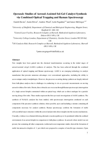Title: | Operando Studies of Aerosol-Assisted Sol–Gel Catalyst Synthesis via Combined Optical Trapping and Raman Spectroscopy |