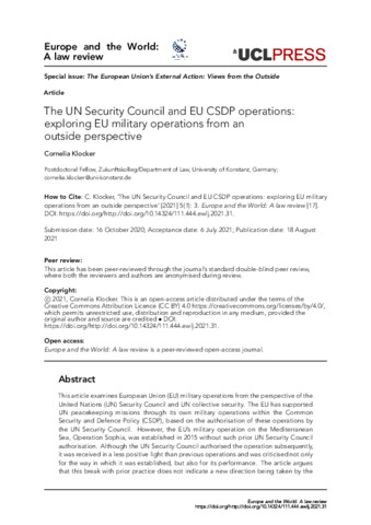 Title: | The UN Security Council and EU CSDP operations: exploring EU military operations from an outside perspective |