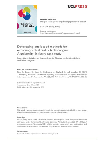 Title: | Developing arts-based methods for exploring virtual reality technologies: A university–industry case study |