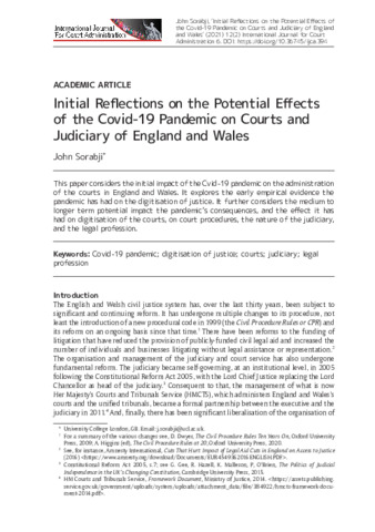 Sorabji_Initial Reflections on the Potential Effects of the Covid-19 Pandemic on Courts and Judiciary of England and Wales_VoR.pdf - Published Version Download (1MB) | Preview |