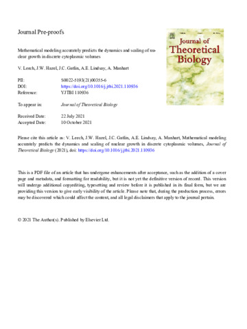 Title: | Mathematical modeling accurately predicts the dynamics and scaling of nuclear growth in discrete cytoplasmic volumes |