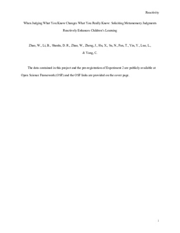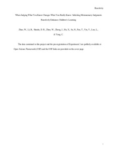 When judging what you know changes what you really know: Soliciting metamemory judgments reactively enhances children's learning.